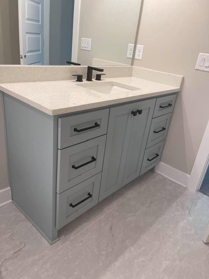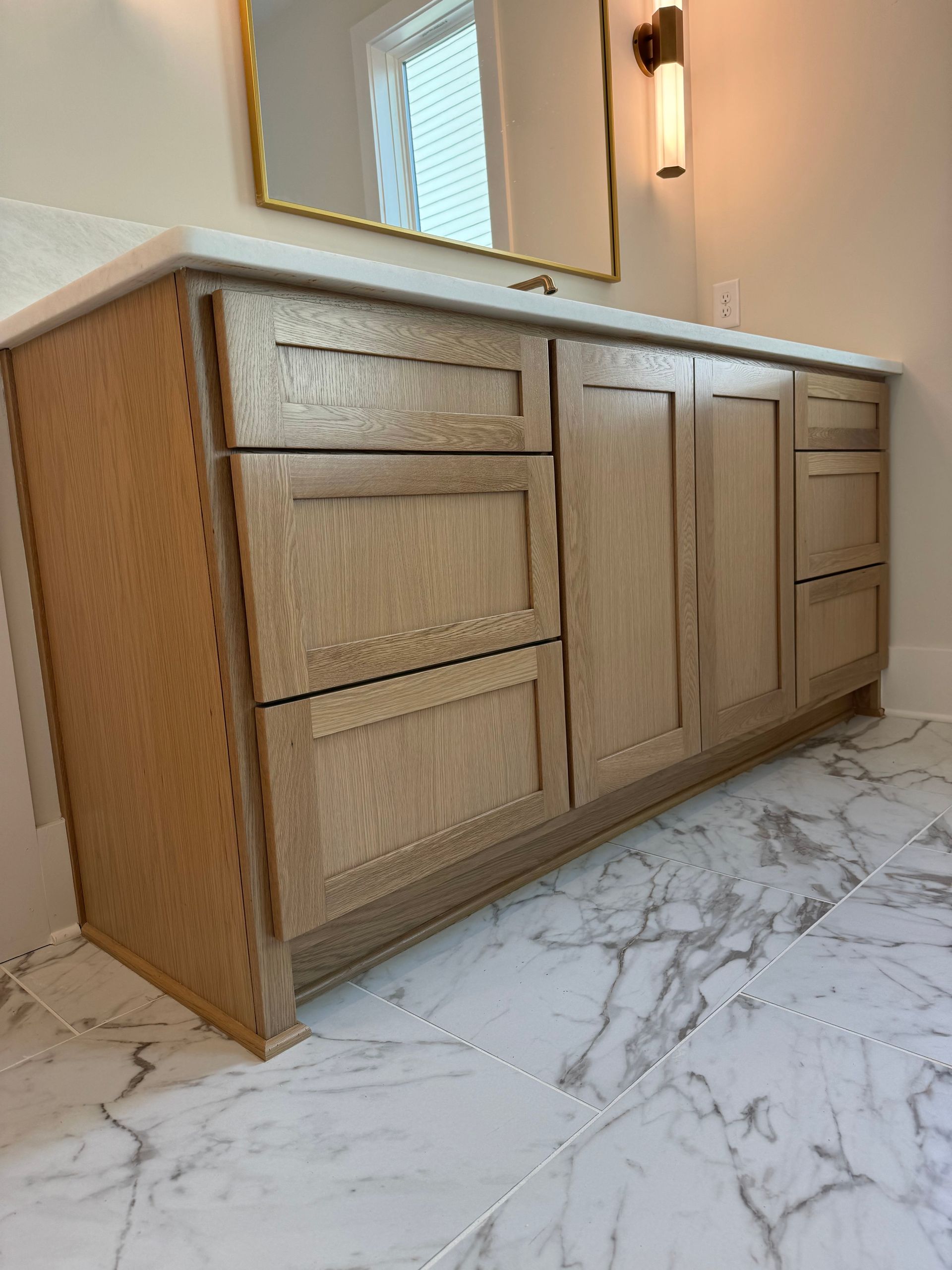 Maximize your bathroom storage with custom vanities and cabinet systems that keep toiletries and essentials organized.